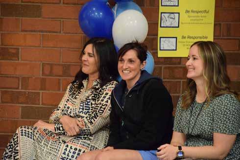 Carly Donahue, center, is all smiles on May 13 when she was officially named GSD Teacher of the Year. She splits her time between Fox Hills Elementary in Taylorsville and Crestview Elementary in Holladay. (Granite School District)
