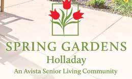 MURRAY 4760 S State Street 801.266.0222 SOUTH JORDAN 1007 W South Jordan Pkwy 801.254.1928 2728 E 3900 S HOLLADAY, UT 84124 Schedule a tour today! 801-441-3521 avistaseniorliving.com/holladayut • Independent Living • Assisted Living • Memory Care Celebrating over a year COVID free and 94% vaccinated. Feels Like HOME.