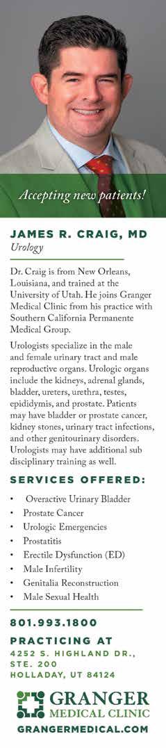Historic Trolley Square 602 E. 500 South, Ste. D241 BigMountainAlchemy.com Facebook/Instagram: @big_mountain_alchemy www.freshcoatpainters.com/sandy 10% OFF 801-980-9697 Take the ElevateHERTM Challenge Are you a business leader? At no cost, the ElevateHERTM Challenge is easy to accept and will benefit your company. Join businesses across Utah in our mission to elevate the stature of women’s leadership. Take the ElevateHERTM Challenge and stand with other businesses as we pledge to elevate women in senior leadership positions, in boardrooms, on management teams and on politcal ballots. LEARN MORE: www.wliut.com/elevateher-challenge DO YOU SUFFER FROM Depression? We can help. • NOT medicine • NOT shock therapy • NOT invasive • IS safe and effective • IS COVERED by most insurance TMS is like physical therapy for the brain. It uses magnetic pulses, similar in strength to an MRI, to reignite dormant connections in the brain and give you control of your depression. With NeuroHealth, you can take back your life. “I had taken 11 different medications without any relief… NeuroStar treatment has helped me bring my life back…with a happiness that I’ve never experienced before” ~TODD Scan here to take a free HIPPA compliant PHQ9 self assessment test. NeuroHealthUtah.Com 10437 So Temple Dr., Suite 200 South Jordan, UT 84095 385-217-6890 BY THE WAY… TMS is covered by most insurances! Let us run a FREE benefit check! Visit neurostar.com for full safety and prescribing information. Outcomes Registry data was published by Sackeim HA, et al. J Affective Disorders, 2020, 277(12):65-74. The outcomes reported represent the subset of study patients for which the CGI-S data was reported before and after an acute course of NeuroStar TMS. Patients were treated under real-world conditions where patients may have been prescribed concomitant depression treatments including medications. “Measurable relief” was defined as a CGI-S score <=3 and “complete remission” was defined as a CGI-S score <=2 at the end of treatment.