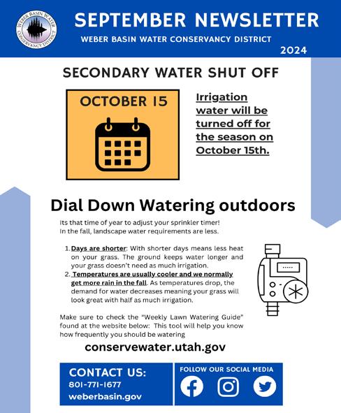 In addition to being the regional water supplier, WBWCD provides water conservation and rebate information, and year-round learning garden classes as well as other special events. This year, their Garden Spooktacular Event will be held at 2837 UT-193, Layton, Oct. 25, 2024, from 4 to 8 p.m. This