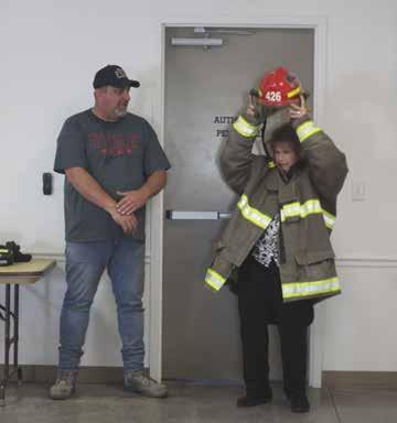 Following the Sher iff’s presentation, John Williams spoke to the group about some of the new equipment the fire department has re cently purchased, as well as their standard equipment. The presen tation began with Elaine Bohn demonstrating the full turnouts used in the course of fire respons es. Williams and others on hand with experience responding to fires re iterated how heavy and hot the equipment could become in the face of a summer fire.