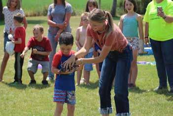 the animals in the pen. Whoever got the most animals in 45 seconds was placed in that event. Feeding time: the contestants had two minutes to identify 5 types of grain. Farmer’s breakfast: the contestants had 1 minute to separate the egg whites and yolks from each other. They were judged on whether the yolks were unbroken, if the whites and yolks were separated properly, and if the cups were shell-free. Water the cows: the contestants each had a small blue bucket that they started at, then had to run back and forth with a sponge to the trough of water. Whoever overflowed their small bucket first won that event. Forgot your pocket knife: the girls had to use a blue piece of twine to cut a tied red piece of twine, the top three contestants that curl the red twine fastest was placed in that event.”