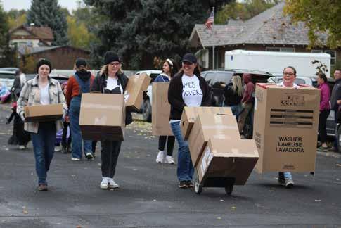 Dressed as movers, the MES faculty and staff get ready to “move” next door in the new year.