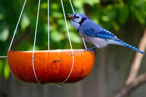 to discover. Mixed seed or black oil sunflower seed will attract the most species and will help fuel birds’ autumn migration, as well as provide energy for the year-round guests who may be bulking up or storing seeds for winter. Sprinkling some seeds on the cut edges of the pumpkin or around where you’ve placed your carved feeder will help birds discover the bounty.