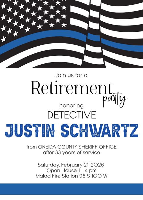 e Idaho Enterprise P.O Box 205 Malad City, Idaho 83252-0205 (U.S.P.S. -- 255-800) The Idaho Enterprise is published weekly at 100 East 90 South, Malad City, Idaho. Postmaster, please mail address corrections to: The Idaho Enterprise, P.O. Box 205, Malad City, Idaho 83252-0205. Entered as “periodicals” at the Malad City, Idaho Post Office. Subscription rates are strictly in advance -- $55.00 per year delivered in Oneida County, and $67.00 per year delivered outside of Oneida County within the United States. The Idaho Enterprise reserves the right to refuse publication of any or all materials.