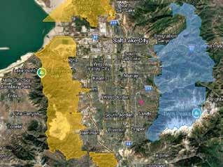 This planning effort will focus on three areas across the county: the Wasatch Canyons (blue), Oquirrh and western foothills (yellow) and Sandy Hills (red). (Photo courtesy of Salt Lake County)