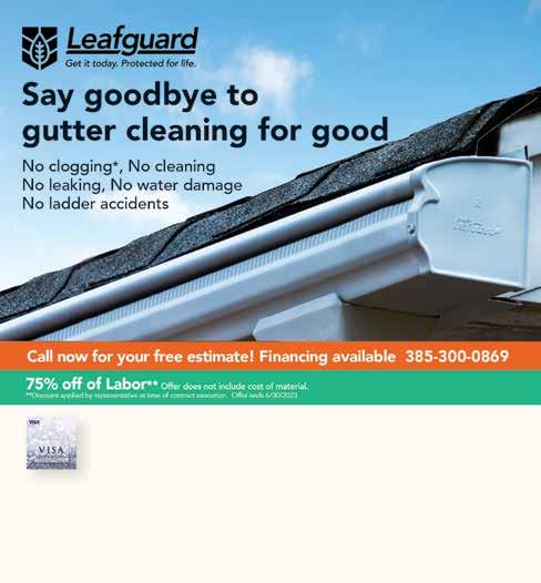 J uly 2023 | Page 23 M illcreek J ournal . co M MILLCREEK PROFESSIONALS Value PLACE AN AD: Call 801-254-5974 ROOFING 801-272-7000 All types of roofs $650 OFF any reroof over 2,000 sq. ft. VEHICLES WANTED We’ll buy your running & non-running, wrecked or broken car, truck or van. 801-485-5111 CarSoldForCash.com A Local Utah Company PAINTING FULL SERVICE PROFESSIONAL PAINTING Interior/Exterior Residential/Commercial Over 20 Years Experience LICENSED AND INSURED For Immediate Service Call 801-865-4049 WATER SOFTENER RELIABLE SOFT WATER without the typical water softener problems • Zero maintenance • No breakdowns • 2/3 LESS salt For free in-home estimate: visit www.KineticoUtah.com or call 801-890-5344 METAL EXTERIORS ASPEN ROOFING Specializing in metal roofs, wall panels, and exterior window treatments. 801-882-2332 www.aspen-roofing.com Call for a FREE estimate today HEATING & AIR CONDITIONING SERVICE & REPAIR LOCALLY OWNED AND OPERATED Residential and Light Commercial Call Jeff at 801-347-1150 24 Hour Emergency: 801-484-0506 SUGARHOUSE HEATING & AIR HEATING & AIR CONDITIONING Apex Clean Air Installations & Repairs Call today for a free in home estimate. 801-449-1939 CONCRETE T3 Concrete LLC Specializes in Driveways, Walkways, Patios, Foundations, Retaining Walls, Basement Entrances Stamp & Color Concrete Call Mate’ for a FREE Estimate 801-918-8843 GUTTER REPAIR Jack’s Pro Gutter and Cleaning 85% of gutters are repairable! 21 years experience - licensed and insured SENIOR DISCOUNTS De-icing and leaf protectors Call or text Jack 801-865-6382 CONCRETE WE SPECIALIZE IN CONCRETE. Concrete Installation & Removal Flatwork Patios Walkways Driveways RV Pads Stamp & Color Garages Retaining Walls Call Ala for Estimate 801-835-0051 AnEConstructionLLC@gmail.com LANDSCAPE MATERIALS REPLENISH LANDSCAPE Barks, Colored Mulch, Compost, Soil Blends, Playground Chips, Sand-Gravel, Landscape Fabric & More 801-252-5962 4660 S 200 W Murray Mention this ad for 10% Off SIDING Capitol Exteriors Siding – Soffit – Fascia –Raingutters Call NOW For SPECIALS 801-997-6940 PERMANENT LIGHTING Trimlight Permanent Lighting Waterproof, programable energy efficient Lifetime Warranty of all Parts Call today for 20% off peak season pricing! 801-890-3381 BOOKS AND MORE www.letsreadfunbooks.com Educational, interactive and fun From activity books, to neat fiction series, to internet-linked science and history encyclopedias Buy Books and More NOW Contact Independent Consultant: Lauren Casper @ letsreadfunbooks.com DECKS & HANDRAILS Utah’s Best Decks Building Utah’s BEST Decks for over 25 years with quality & integrity. Call John today for a FREE estimate. 801-205-5999 BestDecksInUtah.com HVAC RIGHT CHOICE HVAC Heating and Air Free estimate or second opinion! Text or call (385) 887-2033 Satisfaction guaranteed WATER SOFTENER & FILTRATION Water Softener & Filtration NuWater Technologies - Smart Technology - High Efficiency - Zero Maintenance also offering Reverse Osmosis, Water Storage Call for no cost Water Test 801-856-9671 LEAFGUARD RAIN GUTTERS Guaranteed not to clog for as long as you own your home. If it clogs, LeafGuard will come out and clean it for you. One-Piece System, Professional Installation CALL AND RECEIVE A $200 VISA GIFT CARD WITH YOUR LEAFGUARD PURCHASE! Free Estimate - 385-300-0869 TRIBAL HOUSE MOVERS Support Sober Movers in Recovery Full Service • Across Town • Across Country Fast & Efficient • Fully Licensed & Insured Spa Movers • Piano Movers Have your own truck? We can pack it. www.tribalhousemovers.com • movers@menstribalhouse.com 801-599-9957 GENERAL CONTRACTOR WILLIAMS CONSTRUCTION Remodels, Kitchens and Baths New Windows, Doors, and Trimwork Electrical and Plumbing Repairs 40 Years Experience • Licensed and Insured For Estimates, Call Bill (801) 205-0272