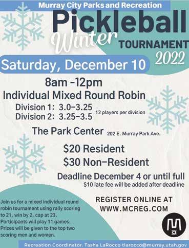 D e C . 2022 | Page 3 M urray J ournal . C o M 965 E Woodoak Lane Murray, UT 84117 1780 W 700 N, Ste. 30 Lindon, UT 84042 385-235-7262 Taylor MEDMRI.com MALONE FAMILY FOUNDATION SCHOLARSHIPS AVAILABLE LEARN FOR LIFE | PreK-12 | WELCOME EVERYONE | SALT LAKE CITY APPLY BY JANUARY 31 rowlandhall.org/malone DEVELOPING PEOPLE THE WORLD NEEDS Utah’s Only Malone Family Foundation School