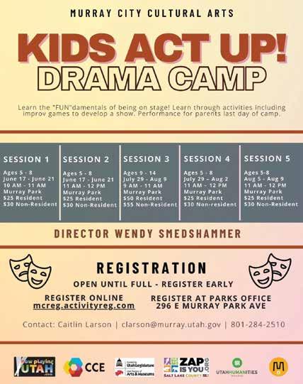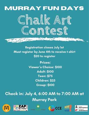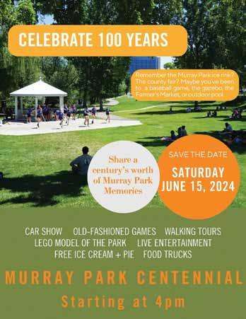 $45RES|$55NON-RES 8:15am Beginner JULY 1-3 & 5 JULY 15-18 JULY 29-AUG 1 EVIL SCIENTIST JUNE 25 & 27 JULY 16 & 18 AUG 6 & 8 T/TH 8:30AM-11AM $199PERPERSON MJULY1-3 ON., TUES E ., WED.12:30PM-2PM ULY1-3 TUES., $99 per scientist BASKETBALL CBASKETBALL CAMP AMP CHESS POWER UP June 17-20 TOURAMENT July15-18 July29-Aug1 1pm-4pm SATURDAY KARATE ARATE CLASSES LASSES $45MONTH 11-11:45AM 12-12:45PM 1-11:45AM 5K RACE K JULY 4 EVENTS JULY 4 EVENTS AGES 10+ 8AM Start AM $30 RES $40 NON-RES 9AM Start KIDS RACE AGES 4-9 $10 RES $15 NON-RES VBOYSOLLEYBALL $30 RES |$40 NON-RES THURSDAYS Outdoor JULY 11-AUG 8 High SchoolAGES 14-17 $50 RES |$60 NON-RES June 10-14 June 17-21 June 24-28 July 8-12 202 E. MURRAY PARK AVE. | 801-284-4200 S U M M E R P R O G R M S S U M M E R P R O G R A M S JUNE 7 | WONKA @ KEN PRICE JUNE 21 | THE LITTLE MERMAID @ OUTDOOR POOL JULY 13 | ELEMENTAL @ OUTDOOR POOL AUG 3 | TROLLS BAND TOGETHER @ KEN PRICE POOL MOVIE $2 Resident $3 Non-Res M O V I E S I N M O V I E S I N T H E T H E P A R K | P O O L P A R K | P O O L JIGSAW IGSAWPUZZLE UZZLE 4SAT,JULY13 PM CAMP AMP Outdoor Swim Lessons utdoor MurrayAquaticsClub Pickleball