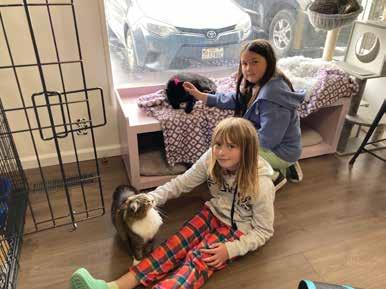 NORAH JENSEN (FRONT) and Quinn Jackson play with cats at Fawn’s Family Rescue & Cat Lounge in Bountiful. The animal rescue gives people a chance to get their kitty fix.