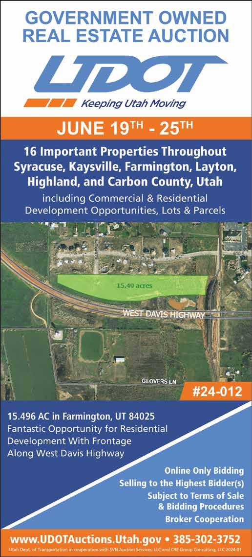 You are summoned and must file a response to the Complaint, in writing, with the clerk of the court at the following address: 800 West State Street, Farmington, Utah 84025, and deliver or mail a copy of your response to the Attorney for Plaintiff, 8833 South Redwood Road, Suite C, West Jordan, Utah 84088, within 21 days if you are served in the State of Utah, or within 30 days if you are served outside the State of Utah, after service of this Summons upon you. If you fail to do so, judgment by default will be taken against you for the relief demanded in said Complaint, which has been filed with the Clerk of said Court and a copy of which is hereto annexed and herewith served upon you. Publishing: 5/31/2024, 6/7/2024, 6/142024, 6/21/2024