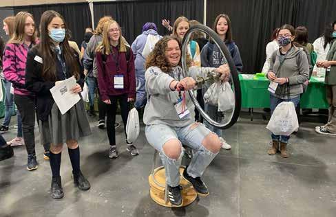 A high school student tries out feeling weightlessness during the SheTech Explorer Day at the Expo Center, which resumed being in-person after going virtual during the pandemic. (Julie Slama/City Journals)
