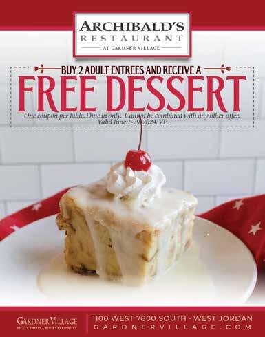 For Advertising Information Please Call 801-901-7963 or visit www.ValuePagesUtah.com 9 •MASALA SQUARE GROCERY STORE • BANQUET HALL AVAILABLE • OUTDOOR DINING • 2,000 SQ. FT. PART Y HALL (SALÓN DE FIESTA) AVAILABLE FOR RENT ADDITIONAL LOCATIONS GANESH INDIAN CU ISINE 145 E. FORT UNION MIDVALE 801.569.3800 1811 Sidewinder Dr. • Park City • 435.538.4110 784 E. State Rd. • American Fork • 385.265.4126 GaneshIndianCuisine.com LUNCH BUFFET Fri, Sat, Sun 11am-3pm BUY 1 ENTRÉE AND GET THE 2ND 1/2 OFF* *Must be of equal or lesser value. Must present coupon, dine in only, valid for lunch and dinner. One coupon per table. Not valid on holidays. Expires 7/15/24. layton marketplace • 765 w antelope dr. • 801-416-8280 canyon rim in millcreek • 3165 e 3300 s • 801-486-0971 orem plaza • 153 n state • 801-426-5259 south jordan towne center • 1665 w towne center • 801-727-2605 the village at day dairy draper • 541 e 12300 s • 801-432-8105 highbury center wvc • 2682 s high commons way • 801-297-1707 buy one get one half off make your own mix from 14 daily flavors and 60+ toppings layton marketplace • 765 w antelope dr • 801-416-8280 canyon rim in millcreek • 3165 e 3300 s • 801-486-0971 orem plaza • 153 n state • 801-426-5259 south jordan towne center • 1665 w towne center • 801-727-2605 uy b o n e g e t o n e h a l f of f ! make your own mix from 14 daily flavors and 60+ toppings discounted yogurt of equal or lesser value up to 12 oz, not valid with any other coupon or offer. expires 7/15/2024 $5 off any froyo cake receive $5 off any in-store cake purchase layton marketplace • 765 w antelope dr • 801-416-8280 canyon rim in millcreek • 3165 e 3300 s • 801-486-0971 orem plaza • 153 n state • 801-426-5259 south jordan towne center • 1665 w towne center • 801-727-2605 the village at day dairy draper • 541 e 12300 s • 801-432-8105 uy b o n e g e t o n e h a l f of f ! make your own mix from 14 daily flavors and 60+ toppings in-store cake purchase only. not valid with any other coupon or offer. valid while supplies last. expires 7/15/2024