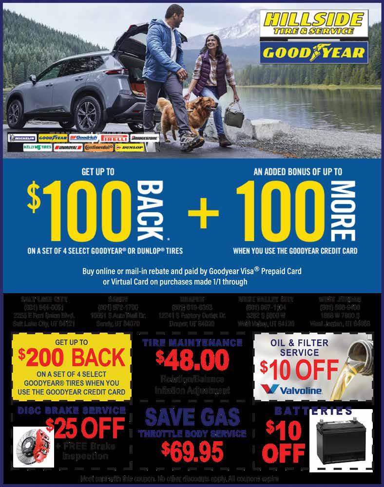 For Advertising Information Please Call 801-901-7963 or visit www.ValuePagesUtah.com 11 801-523-0055 • Brody’s Car Care Center Valid only with coupon. Use one coupon only per visit. Not valid with other offers. Expires 05/15/19. Value Pages™ Hours: Mon-Fri 7:30am - 6:00pm, Sat 7:30am - 4:00pm 9245 S 1300 E • SANDY 801-523-0055 Family Owned & Operated Since 2001 The Right Choice… for all the right reasons. brodyscarcare.com Emission Test 801-523-0055 • Brody’s Car Care Center Valid only with coupon. Use one coupon only per visit. Not valid with other offers. Expires 05/15/19. Value Pages™ Most vehicles 801-523-0055 • BRODY’S Car Care Center SPRING SAVINGS! $10 OFF Any Service of $100-$199 $25 OFF Any Service of $200-$299 $40 OFF Any Service of $300 & up! 801-523-0055 • Brody’s Car Care Center Valid only with coupon. Use one coupon only per visit. Not valid with other offers. Expires 05/15/19. Value Pages™ $10off Emission Test Includes FREE Vehicle Inspection • Lube, oil & new filter (up to 5qts of syn-blend oil) • Examine all belts & hoses for cracks & proper tension • Top off all fluid levels under the hood • Check air filter • Adjust tire pressure to manufacturers specs • Does not include recycle fee Full Service Oil Change $3499 Reg. $39.99 Most vehicles $4999 Reg. $59.99 • Full Service Oil Change up to 5 Qts. Synthetic Blend Oil • Check/Fill all Fluids under the Hood • 4 Tire Rotation • Inspect Belts & Hoses • Inspect Tire Condition • Test Antifreeze • Check Battery & Charging System Spring Special Most vehicles Full Service Oil Change Air Conditioning Service $3499 $40off • Lube, oil & new filter (up to 5qts of syn-blend oil) • Examine all belts & hoses for cracks & proper tension • Top off all fluid levels under the hood • Check air filter • Adjust tire pressure to manufacturers specs • Does not include recycle fee • Recovery & Recharge up to 2lbs. R134A Freon • Check leaks & system pressurization check Reg. $189.95 Most vehicles. Valid only with coupon. Use one coupon only per visit. Not valid with other offers. Expires 10/15/19 Most vehicles. Valid only with coupon. Use one coupon only per visit. Not valid with other offers. Expires 10/15/19 801-523-0055 Brody’s Car Care Center 801-523-0055 • Brody’s Car Care Center Emission Test Brake Service $10off $20off Includes FREE Vehicle Inspection Valid only with coupon. Use one coupon only per visit. Not valid with other offers. Expires 10/15/19 Valid only with coupon. Use one coupon only per visit. Not valid with other offers. Expires 10/15/19. 801-523-0055 • Brody’s Car Care Center 801-523-0055 • Brody’s Car Care Center 801-523-0055 • Brody’s Car Care Center Valid only with coupon. Use one coupon only per visit. Not valid with other offers. Expires 05/15/19. Value Pages™ 144487 Hours: Mon-Fri 7:30am - 6:00pm, Sat 7:30am - 4:00pm 9245 S 1300 E • SANDY 801-523-0055 Family Owned & Operated Since 2001 The Right Choice… for all the right reasons. brodyscarcare.com Emission Test 801-523-0055 • Brody’s Car Care Center Valid only with coupon. Use one coupon only per visit. Not valid with other offers. Expires 05/15/19. Value Pages™ Most vehicles 801-523-0055 • BRODY’S Car Care Center Valid only with coupon. Use one coupon only per visit. Not valid with other offers. Expires 05/15/19. Value Pages™ SPRING SAVINGS! $10 OFF Any Service of $100-$199 $25 OFF Any Service of $200-$299 $40 OFF Any Service of $300 & up! 801-523-0055 • Brody’s Car Care Center Valid only with coupon. Use one coupon only per visit. Not valid with other offers. Expires 05/15/19. Value Pages™ $10off Emission Test Includes FREE Vehicle Inspection • Lube, oil & new filter (up to 5qts of syn-blend oil) • Examine all belts & hoses for cracks & proper tension • Top off all fluid levels under the hood • Check air filter • Adjust tire pressure to manufacturers specs • Does not include recycle fee Full Service Oil Change $3499 Reg. $39.99 Most vehicles $4999 Reg. $59.99 • Full Service Oil Change up to 5 Qts. Synthetic Blend Oil • Check/Fill all Fluids under the Hood • 4 Tire Rotation • Inspect Belts & Hoses • Inspect Tire Condition • Test Antifreeze • Check Battery & Charging System Spring Special Most vehicles Excludesmotorhomes 801-523-0055 • Brody’s Car Care Center Valid only with coupon. Use one coupon only per visit. Not valid with other offers. Expires 10/15/18. Value Pages™ 142838 Hours: Mon-Fri 7:30am - 6:00pm, Sat 7:30am - 4:00pm 9245 S 1300 E • SANDY 801-523-0055 Family Owned & Operated Since 2001 The Right Choice… for all the right reasons. brodyscarcare.com Emission Test 801-523-0055 • Brody’s Car Care Center Valid only with coupon. Use one coupon only per visit. Not valid with other offers. Expires 10/15/18. Value Pages™ Most vehicles $10 OFF Any Service of $100-$199 $25 OFF Any Service of $200-$299 $40 OFF Any Service of $300 & up! 801-523-0055 • BRODY’S Car Care Center Valid only with coupon. Use one coupon only per visit. Not valid with other offers. Expires 10/15/19. Value Pages™ 801-523-0055 • Brody’s Car Care Center Valid only with coupon. Use one coupon only per visit. Not valid with other offers. Expires 10/15/18. Value Pages™ $10off Emission Test Includes FREE Vehicle Inspection • Lube, oil & new filter (up to 5qts of syn-blend oil) • Examine all belts & hoses for cracks & proper tension • Top off all fluid levels under the hood •Check air filter • Adjust tire pressure to manufacturers specs • Does not include recycle fee Full Service Oil Change $3499 Reg. $39.99 Most vehicles $4999 Reg. $59.99 • Full Service Oil Change up to 5 Qts. Synthetic Blend Oil • Check/Fill all Fluids under the Hood • 4 Tire Rotation • Inspect Belts & Hoses • Inspect Tire Condition • Test Antifreeze • Check Battery & Charging System Fall Special Most vehicles SUMMER SAVINGS 7/31/20. Valid only with c