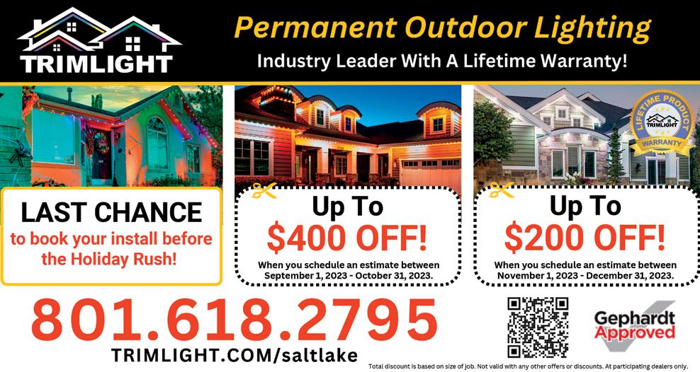 S e P t . 2023 | Page 31 S outh J ordan J ournal . C om SOUTH JORDAN TREE SERVICES INTERMOUNTAIN TREE EXPERTS Removals . Trimming . Pruning Licensed and Insured / 30+ Yrs Experience 801-244-3542 FREE ESTIMATES ROOFING 801-272-7000 All types of roofs $650 OFF any reroof over 2,000 sq. ft. VEHICLES WANTED We’ll buy your running & non-running, wrecked or broken car, truck or van. 801-485-5111 CarSoldForCash.com A Local Utah Company WATER SOFTENER RELIABLE SOFT WATER without the typical water softener problems • Zero maintenance • No breakdowns • 2/3 LESS salt For free in-home estimate: visit www.KineticoUtah.com or call 801-890-5344 LEAFGUARD RAIN GUTTERS Guaranteed not to clog for as long as you own your home. If it clogs, LeafGuard will come out and clean it for you. One-Piece System, Professional Installation CALL AND RECEIVE A $200 VISA GIFT CARD WITH YOUR LEAFGUARD PURCHASE! Free Estimate - 385-300-0869 HEATING & AIR CONDITIONING Apex Clean Air Installations & Repairs Call today for a free in home estimate. 801-449-1939 CONCRETE WE SPECIALIZE IN CONCRETE. Concrete Installation & Removal Flatwork Patios Walkways Driveways RV Pads Stamp & Color Garages | Retaining Walls Call Ala for Estimate 801-835-0051 AnEConstructionLLC@gmail.com Automotive Services Randy’s Tire and Muffler Complete Auto Repair & Service Manager Owned and Operated Serving Bluffdale/South Valley for 3 Generations 14250 S Redwood Rd 801.254.9971 RandysTireAndMuffler.com GUTTER REPAIR Jack’s Pro Gutter and Cleaning 85% of gutters are repairable! 21 years experience - licensed and insured SENIOR DISCOUNTS De-icing and leaf protectors Call or text Jack 801-865-6382 LANDSCAPE MATERIALS REPLENISH LANDSCAPE Barks, Colored Mulch, Compost, Soil Blends, Playground Chips, Sand-Gravel, Landscape Fabric & More 801-252-5962 4660 S 200 W Murray Mention this ad for 10% Off CONCRETE T3 Concrete LLC Specializes in Driveways, Walkways, Patios, Foundations, Retaining Walls, Basement Entrances Stamp & Color Concrete Call Mate’ for a FREE Estimate 801-918-8843 PERMANENT LIGHTING TRIMLIGHT Permanent Holiday & Accent Lighting Experts! Save Up to $800 Off Your Lights Today! Schedule estimate before 8/31/23. Visit Trimlight.com/saltlake for full details. 801-890-3381 PLUMBING THE DRAIN BOYZ FREE ESTIMATES Plumbing,Piping, Installations Drain Cleaning Service and Repair, Large and Small Remodeling Call or Text - Steve or Lea 801.637.1543 or 385.253.0412 DECKS & HANDRAILS Utah’s Best Decks Building Utah’s BEST Decks for over 25 years with quality & integrity. Call John today for a FREE estimate. 801-205-5999 BestDecksInUtah.com PROFESSIONAL PAINTING Residential, Commercial, Interior, Exterior Reliable, Dependable, and CLEAN 25 Years of Experience Call: 801-750-0977 www.nobleonepropainting.com NobleOne Professional Painting WATER SOFTENER & FILTRATION Water Softener & Filtration NuWater Technologies - Smart Technology - High Efficiency - Zero Maintenance also offering Reverse Osmosis, Water Storage Call for no cost Water Test 801-856-9671 PROPERTY MAINTENANCE Specializing in Sprinkler Repair and Install, Landscaping, and Dry Scaping Call today! 801-953-8751 MAINTENANCE PROPERTY OWEN Licensed and Insured TRIBAL HOUSE MOVERS Support Sober Movers in Recovery Full Service • Across Town • Across Country Fast & Efficient • Fully Licensed & Insured Spa Movers • Piano Movers Have your own truck? We can pack it. www.tribalhousemovers.com • movers@menstribalhouse.com 801-599-9957 SIDING Capitol Exteriors Siding – Soffit – Fascia –Raingutters Call NOW For SPECIALS 801-997-6940 GENERAL CONTRACTOR WILLIAMS CONSTRUCTION Remodels, Kitchens and Baths New Windows, Doors, and Trimwork Electrical and Plumbing Repairs 40 Years Experience • Licensed and Insured For Estimates, Call Bill (801) 205-0272
