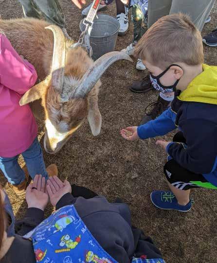 Clockwise: Cottonwood’s Kolt Kids preschoolers learned the letter G stands for goat and then they got to learn about taking care of goats. (Terilee Herbon/Cottonwood High)