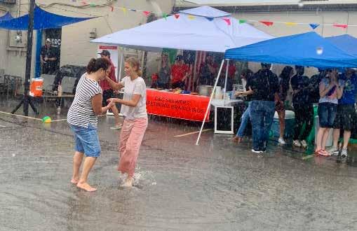 Above: Guests dance in the rain to the music as a puddle begins to form in the center at the Brazilian Arts Center. (Jesse M. Gonzalez/City Journals)