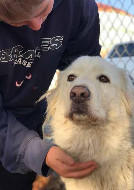 “I’ve lived with animals throughout my life. I’ve grown to love them and love being with them. And when I heard they were short staffed, I decided I wanted to help,” Wood said, pulling Spaghetti, the Great Pyrenees, into a cuddly hug.
