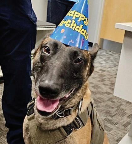 The Taylorsville Police Department celebrated the birthdays of its K-9 partners, Koda, now 6, and Turbo, who turned 5. The celebration recognized not only their years of service but also the hard work that goes into maintaining top performance as crime- ghting dogs.