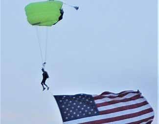 “Taylorsville Dayzz is one of the biggest events we do each year,” Wallace said. “Nearly every year we make two jumps that night. First, we almost always jump into the Riverton Rodeo. The two events are nearly always the same night. Then we repack our chutes, get back in the plane and jump into Taylorsville. I am usually the one with the huge, unfurled United States flag hanging behind me. We love seeing all the people – especially the kids. And we’ve never had any problems with one of our jumpers landing in the field to the west.”