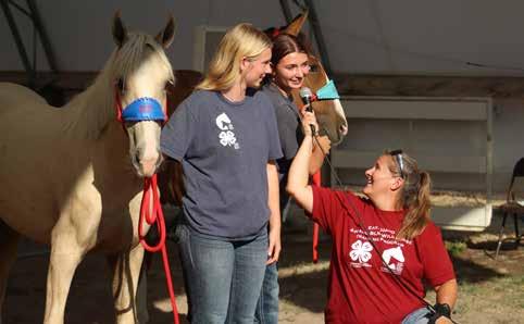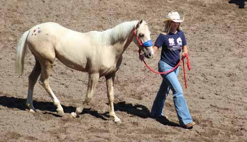 The mustangs are brought by the BLM to a designated area to be picked up. This year, there were three Oneida county kids who worked the horses over the summer. After choosing their horses, the trainers had 90 days to work with them. Training started slowly, with the horses getting used to the 4H member. Activities like feeding, watering, and just hanging out closer and closer to the mustang are the first steps, until they can get the first touch. Once that is done things start moving a little faster, touching, then haltering. Once the trainer is able to catch the mustang and start moving it around in a controlled space then they start introduc-