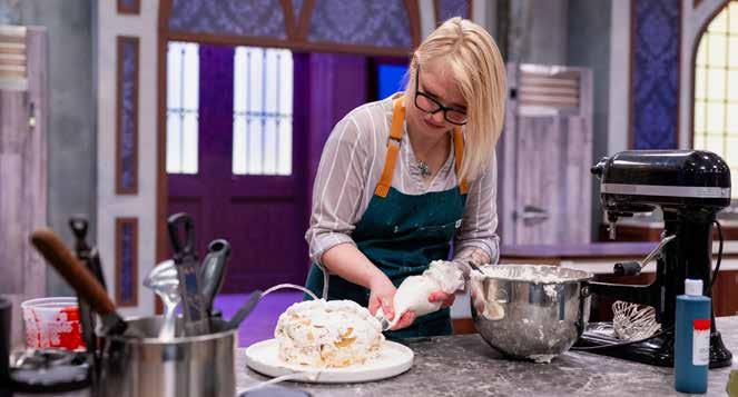 The West Jordan resident was one of 10 bakers from around the country who competed on the seven-episode show, vying for the chance to win $25,000. Set in a haunted mansion, the Halloween Baking Championship created terrifying competitions for the contestants. The first baking test challenged bakers to depict their number one Halloween fright, and make it pump blood.