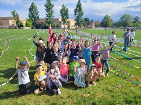 Students and parent volunteers spread the 15,000 link fraction chain on Jordan Hills Elementary School’s field. (Photo courtesy of Kimberly Sanders.)