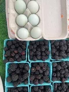 Some fresh blackberries and eggs at a farm stand. (Genevieve Vahl/City Journals)