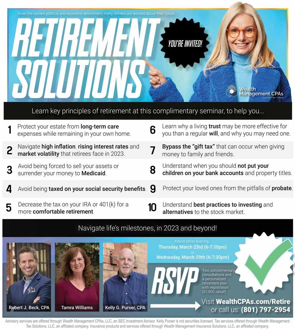 ECRWSS Local Postal Customer Presort Std U.S. Postage P A I D Ogden, UT Permit #190 Scan Here: Interactive online edition with more photos. FREE March 2023 | Vol. 09 Iss. 03 VAPE || VAPORIZER || KRATOM || CBD || ATOMIZER || WATER PIPES || GLASS 801.948.0505 | 3738 W 5400 S | Taylorsville, UT 84129 VAPE & SMOKE SHOP The Best Prices Huge Product Selection 25 % off ANY ITEM! Excluding tobacco. Must mention ad at time of purchase. Expires 4/15/23.