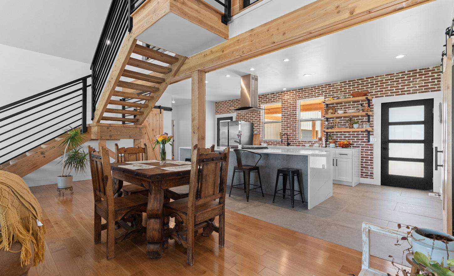 • Open kitchen designed for functionality and or to entertain features quartz countertops, center island with breakfast bar and water fall edge, 2 pantries with barn doors, soft close drawers, pull out trash and recycle, front patio access and stainless-steel appliances which includes a gas range with flat grill are all included