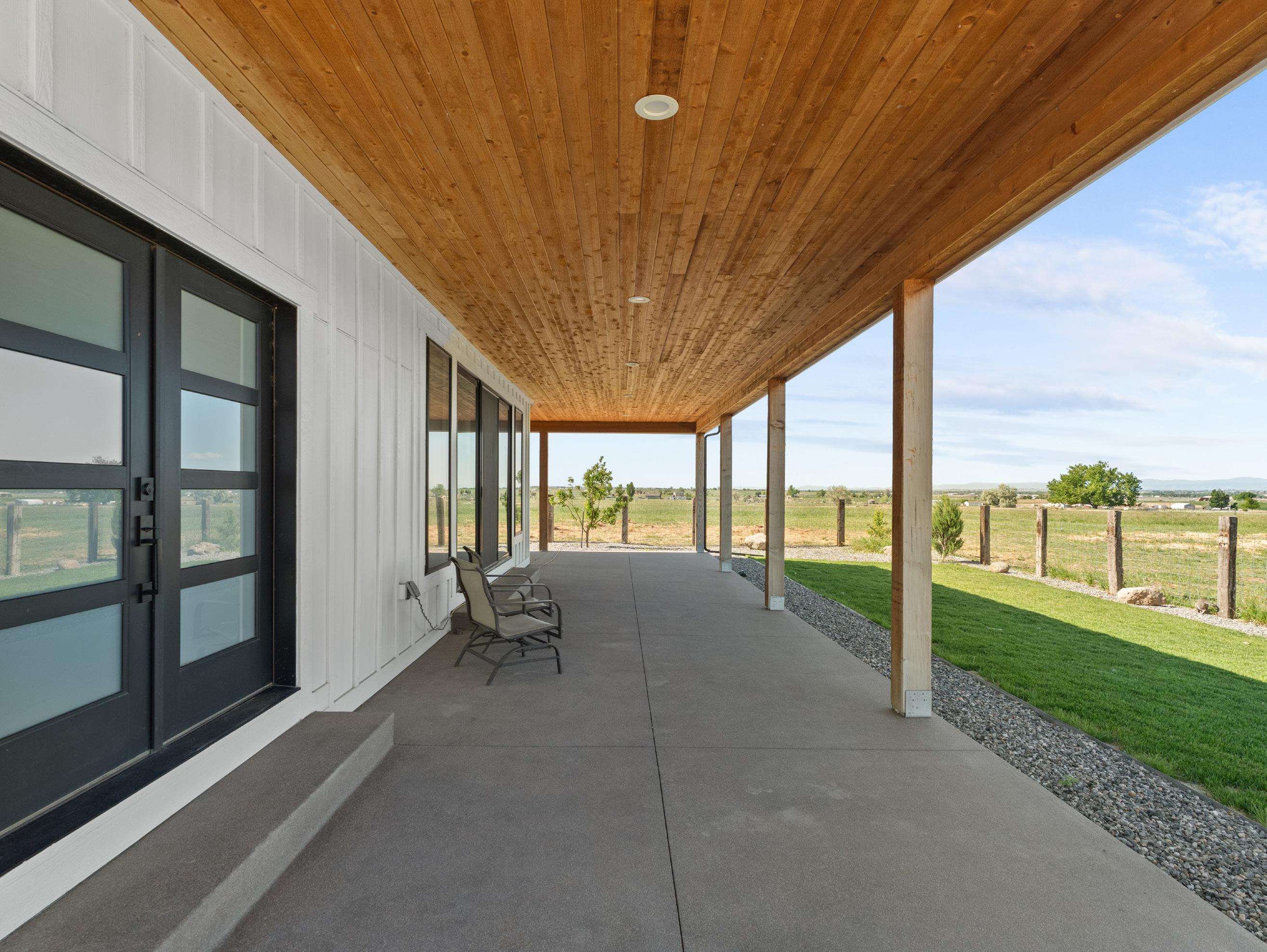 • Massive backyard covered patio with sand coated concrete and tongue and groove pine ceiling