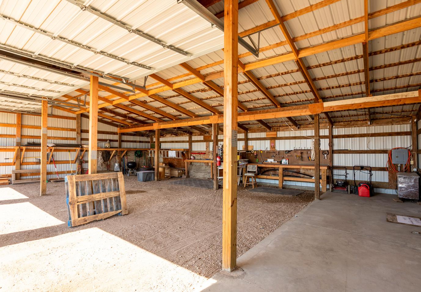 • Workshop 30’x40’ w/3 overhead bays, work benches, 110 & 220 electric with water and septic roughed in.
