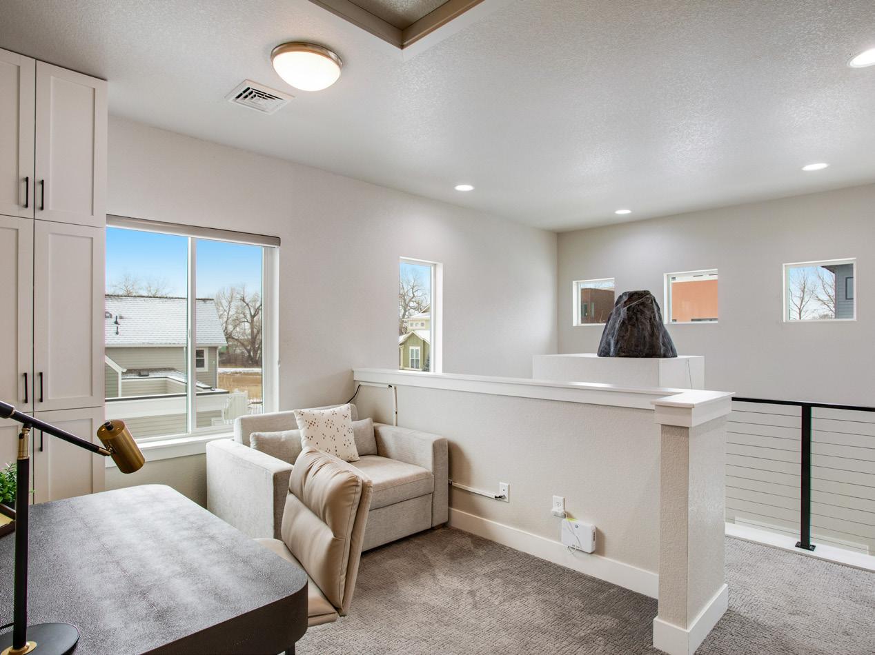 Entertain in style on your engineered rooftop deck - wired with 240V and built for a hot tub - where panoramic mountain views and breathtaking sunsets await. The professionally landscaped, fully fenced side yard is designed for low-maintenance outdoor living and unforgettable gatherings. Inside, the main level dazzles with engineered hardwood floors, soaring ceilings, and an open-concept layout anchored by a dramatic 3-sided fireplace. The chef’s kitchen boasts white quartz countertops, custom cabinetry, full tile backsplash, and a walk-in pantry, all finished with modern designer touches. A barn slider leads to the mudroom and access to garage as well as sideyard. Upstairs, a striking black steel and stainless cable handrail guides you to a versatile loftideal for a home office or yoga studio - plus three bedrooms and two baths. The oversized primary suite features a walk-in closet, unique exposed ducting, and a spa-inspired bath with quartz tops, full-height white subway tile, and a large walk-in shower. Just steps from Old Town Fort Collins and New Belgium Brewery, PLUS directly across from the Poudre River Kayak Park and trail system - this location is truly unmatched! Coveted Old Town North is a lifestyle just waitng for you to join. Lastly, As of 3/31/2026, Primary Short Term Rentals are an allowable use. Buyer to verify with City of Fort Collins.