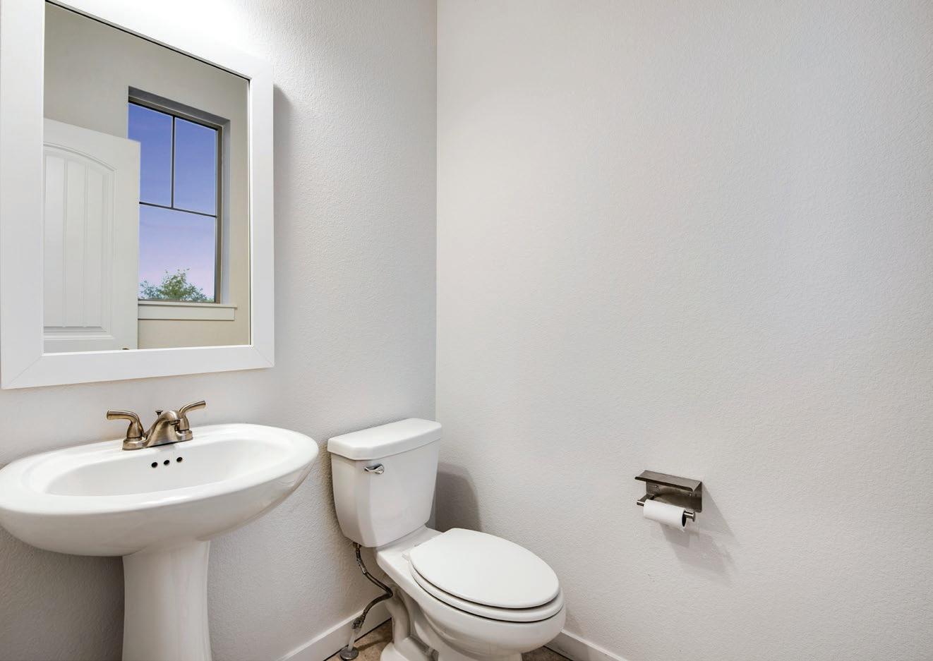 • Guest half bath on main with pedestal sink and tile flooring