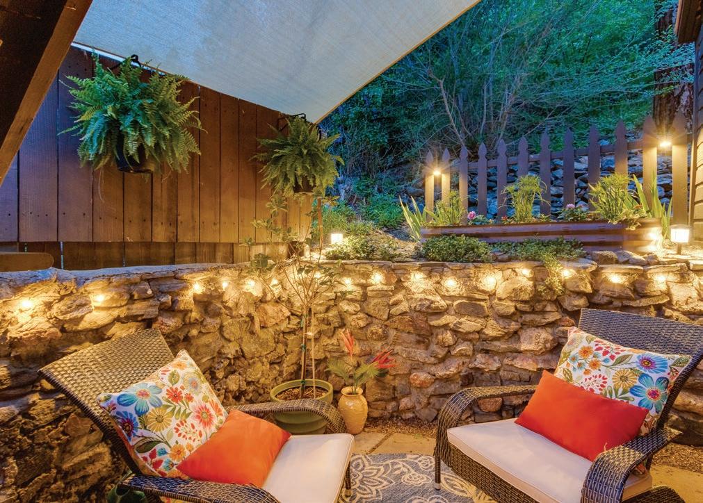 • LARGE primary bedroom with retreat and spacious closet. Note the deep upper storage area above entrance to primary bedroom and the private courtyard/garden