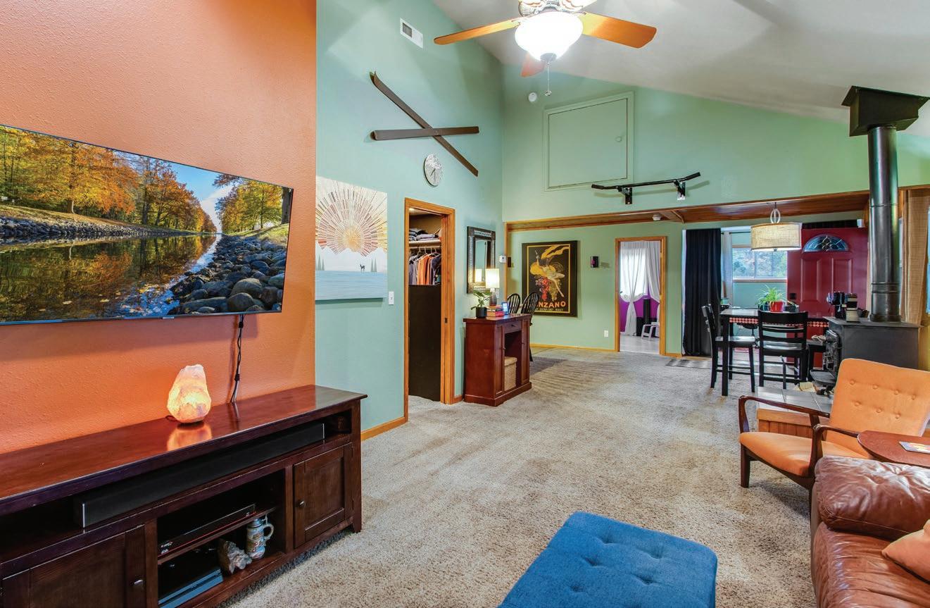 • Living room features a wood burning Kingsman fireplace and vaulted ceilings