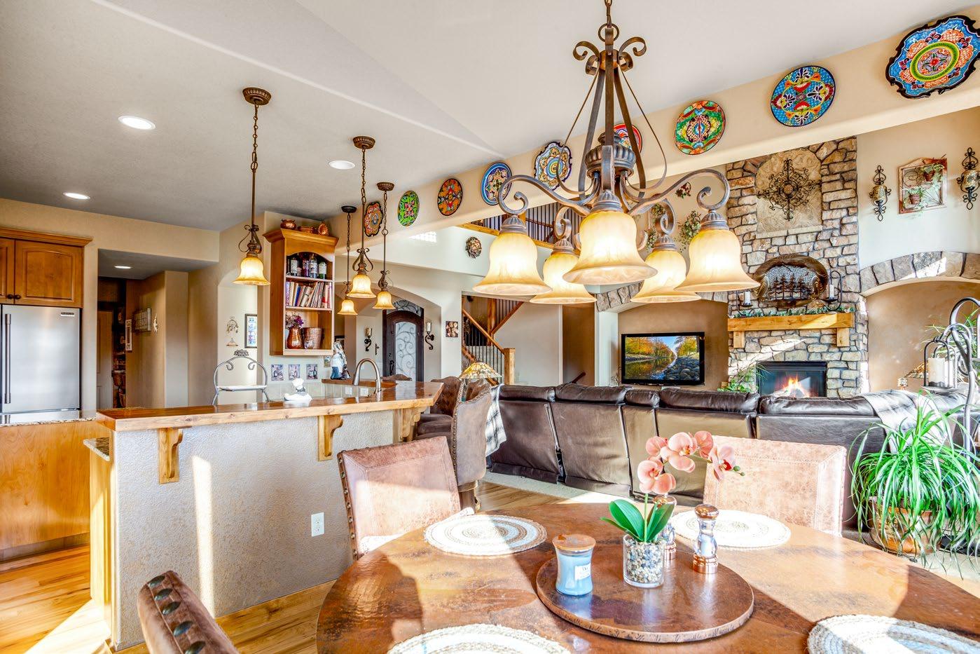 • Gourmet kitchen features 2 islands, wrap around breakfast bar, veggie prep sink with disposal, granite slab countertops, full tile backsplash, plenty of cityscape alder cabinets with crown molding and hardware, walk-in pantry with censored light and lazy Susan. All kitchen appliances are included