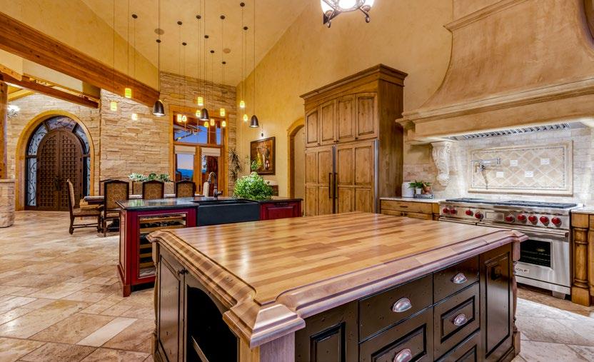 • Built in full size SUB-ZERO refrigerator and freezer, 6-burner WOLF gas range with flat griddle and double ovens, pot filler, full stone backsplash and commercial grade hood, 42” cabinets, crown molding, hardware, soft-close, roll-out drawers,
