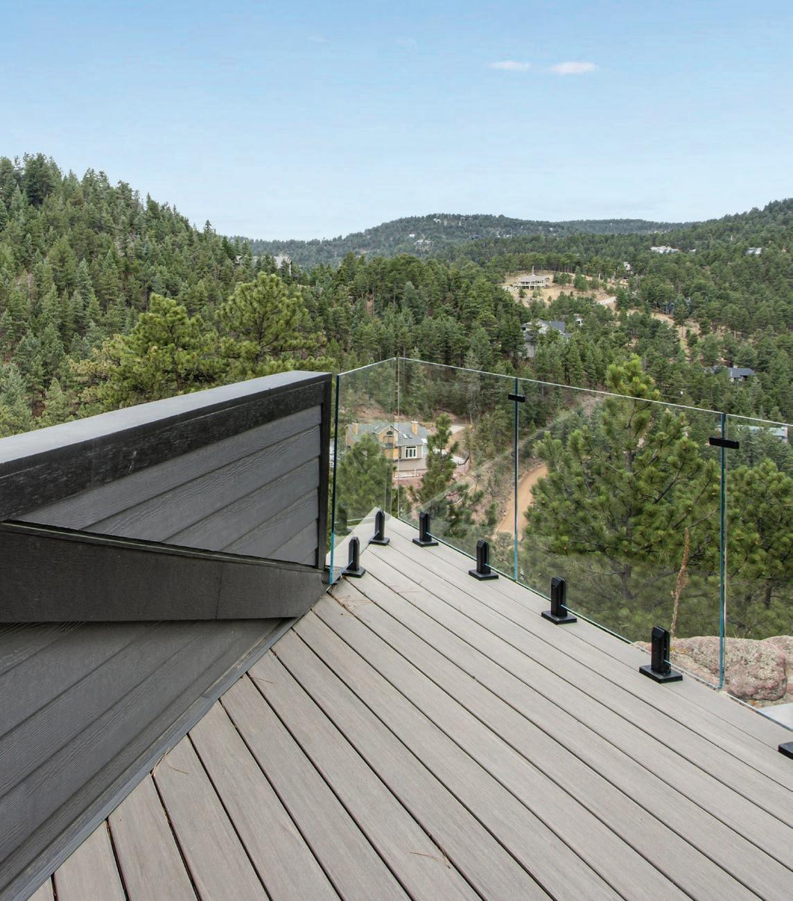 » Central staircase with iron railing leads you up to an upper-level office featuring floor to ceiling windows, and a private balcony