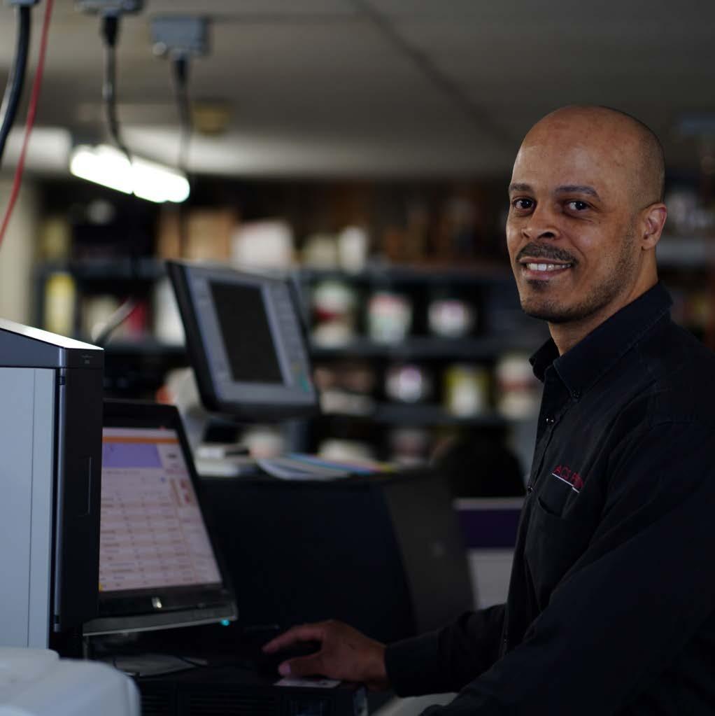 Walk into ACS Printing, located in the ACES Small Business Incubator, and you will find the family-owned business humming with activity. Political candidates pick up campaign posters, museum directors drop off annual report materials, students drop off newsletters, and neighbors pick up flyers for a bake sale fundraiser. Owner Averell Hilton started the business 29 years ago when computer printing was just beginning to make an impact. Seeing potential for a business opportunity, he bought a copier. Then, one day, he was walking home from his accounting job when he passed a printshop that was going out of business. “I walked in, and I bought a printing press,” Hilton said. “I bought this printing press and I put it on a dolly and rolled it down the street.” Hilton dove in, and has been a printer ever since. With help from the Community Loan Fund, he was able to finance several more pieces of equipment and add several employees.