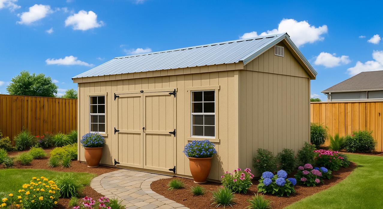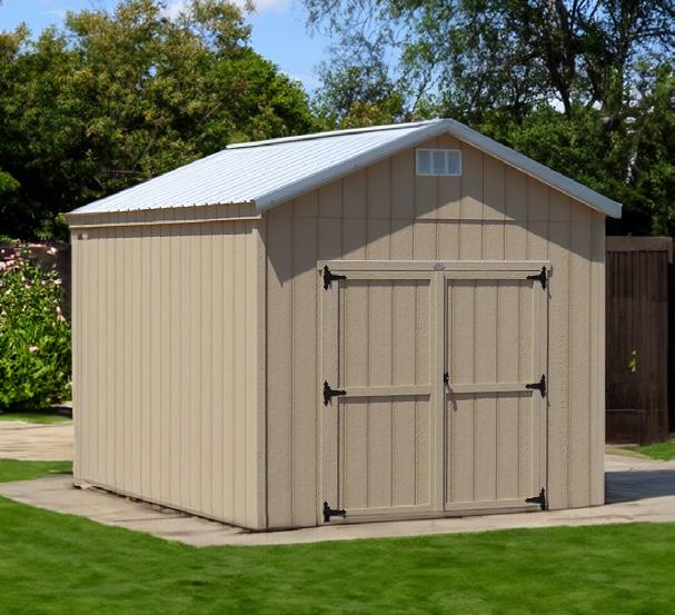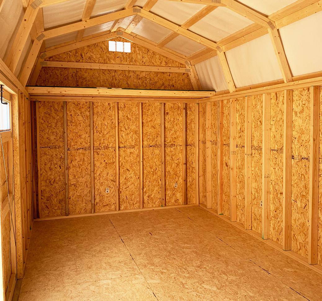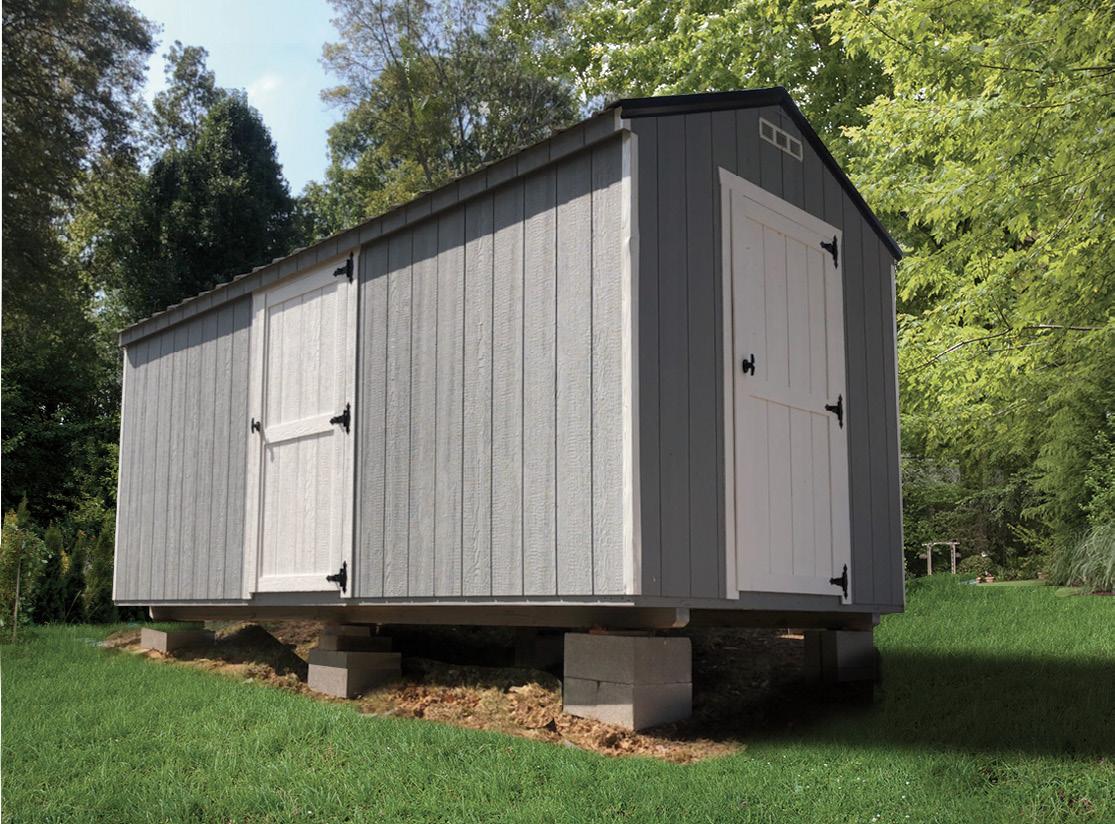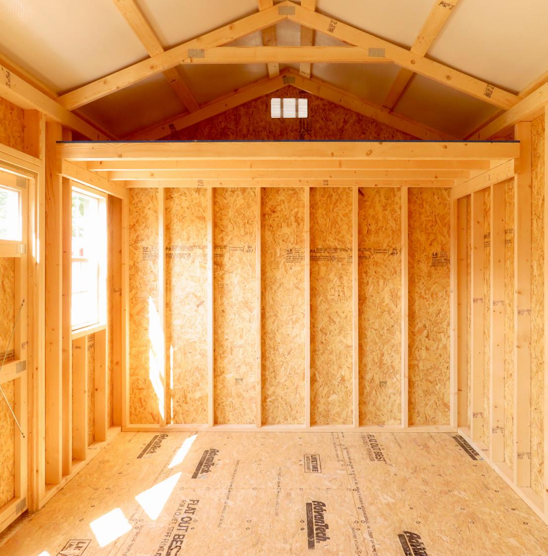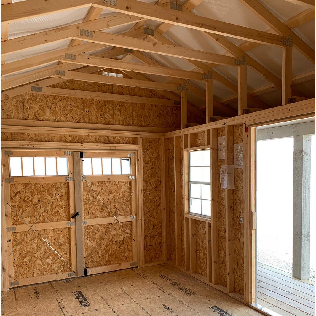 The Big Sky stands as an excellent choice for storage, workshop or gardening needs with a touch of practical elegance. The heightened walls not only increase storage capacity but also contribute to the shed’s overall spacious and open feel. Elevate your organization game with this shed, where ample storage meets thoughtful design. Wall Studs: 16” on Center (LP Models) 24” on Center (Metal Models) Two 2’ Loft (10’ Long)