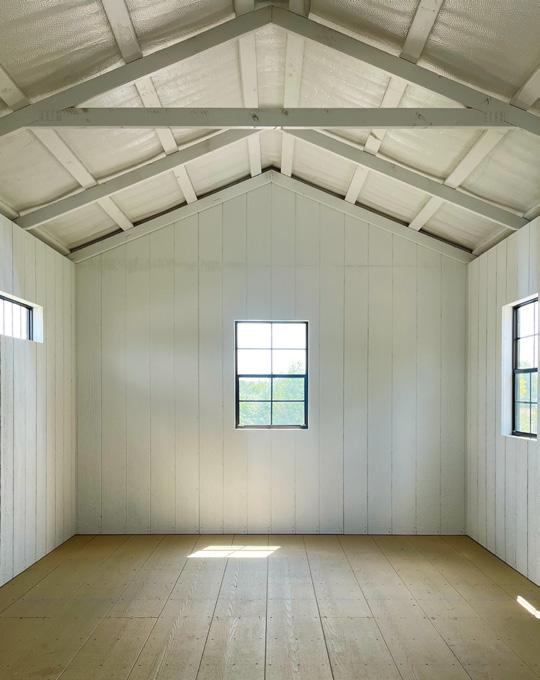 Smart siding on walls then painted white, including roof trusses and purlins for a clean and finished look.