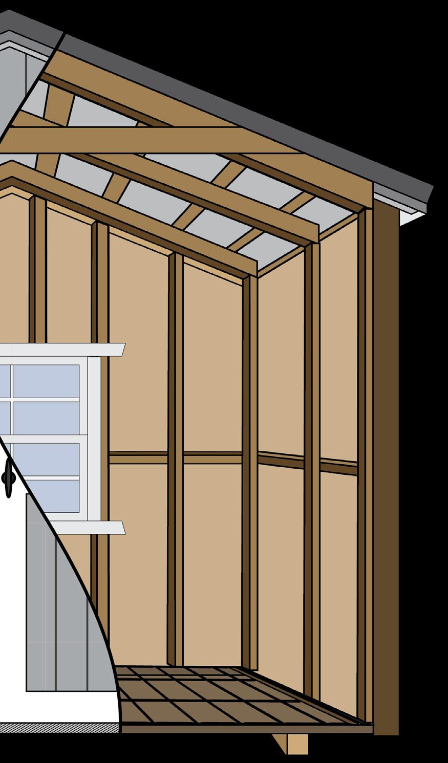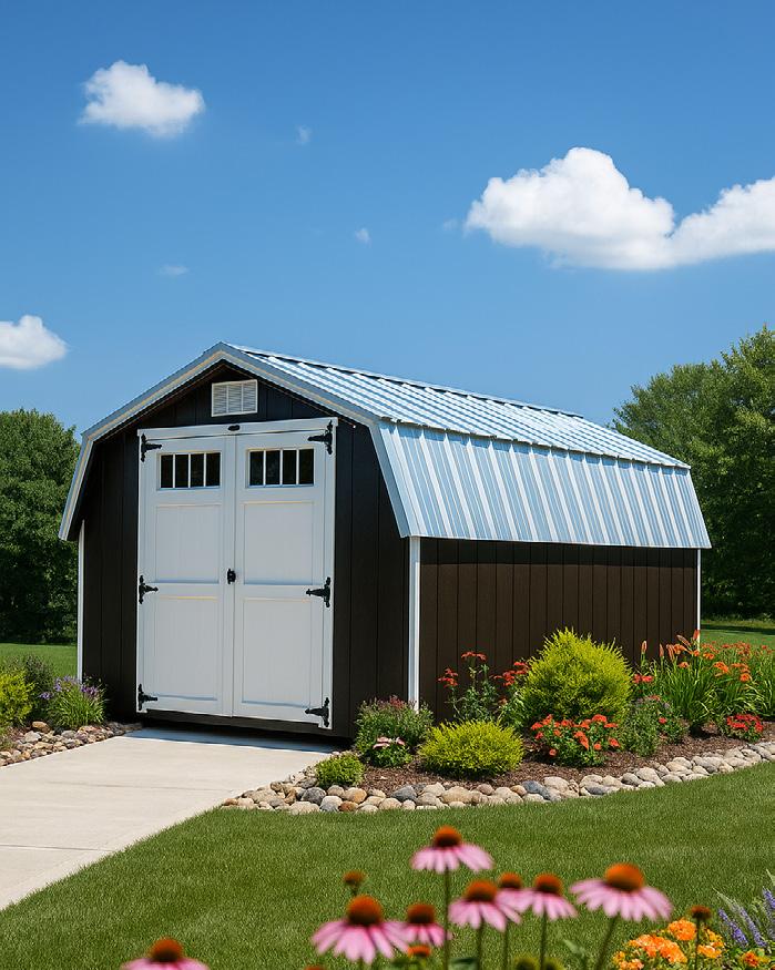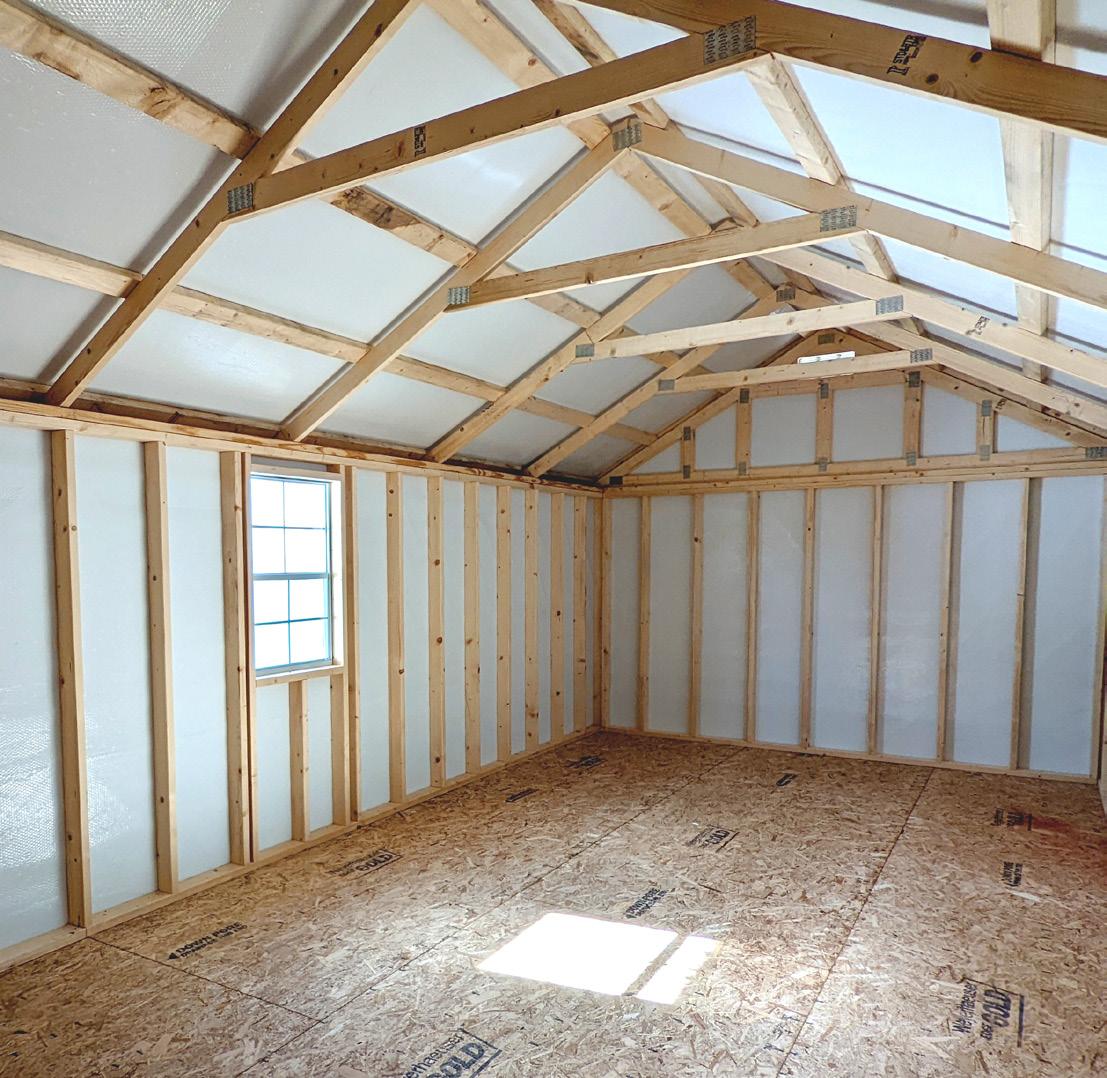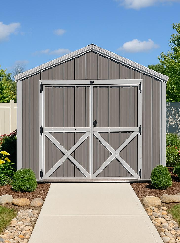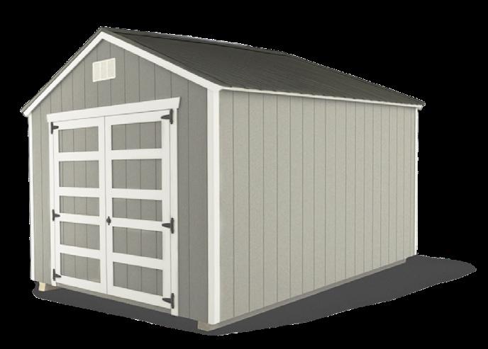 The Big Sky stands as an excellent choice for storage, workshop or gardening needs with a touch of practical elegance. The heightened walls not only increase storage capacity but also contribute to the shed’s overall spacious and open feel. Elevate your organization game with this shed, where ample storage meets thoughtful design. Wall Studs: 16” on Center (LP Models) 24” on Center (Metal Models) Two 2’ Loft (10’ Long)