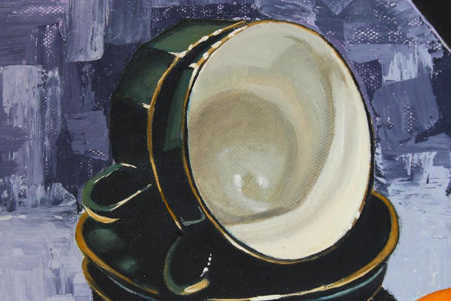 Martin is almost entirely self-taught with no formal training beyond school and still considers himself just a student practicing his art. His work can be diverse & wide-ranging. Apart from his current focus on still life it includes landscapes & urban scenes to more figurative/abstract work and commissioned portraiture, but whatever the subject matter his painterly style is characterized by a trademark vibrancy of colour and attention to fine detail, sometimes accompanied by a slightly surreal twist. He is a member of the Visual Artists’ Association and a founder member of the Derbyshire Artists’ Guild and in 2020 his work was selected for show in both the Harley Gallery Open and the prestigious ING Discerning Eye exhibitions. In 2022 his work was recognized by the Royal Academy and selected for the Summer Exhibition 2022 and in 2023 by the Ruth Borchard Organisation for their virtual Self Portrait Exhibition. For the last three years Martin has been a regular exhibitor at the Salon Contemporary Arts in Derby. Even though he is almost wholly self-trained Martin’s artwork is sought by private collectors around the world and he has secured coveted gallery space throughout the UK as well as here in his native Derbyshire where he works from his home studio.