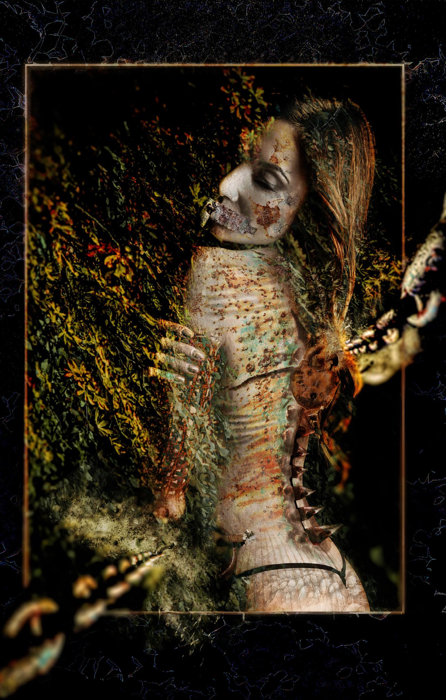 A wise man once told me, "Its not the length of time it took to create the art, but the length of time it took to learn how to create it that needs to be considered". My artwork tends to be either dark and moody or bright garish and bold. Each piece is made of 50+ individual layers that have been manually blended together to create a seamless image. Normally I blend items that should not be found in the same space, such as rusty mentl spikes to replace the backbone of a female model.