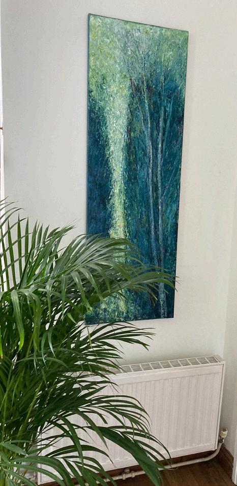 What's the inspiration / story associated with the artwork? This was a painting completed during lockdown, I loved the way in which the light pouring between the trees echoed the form of the birch tree. It was a symbol of hope and a reminder that the light always breaks through.