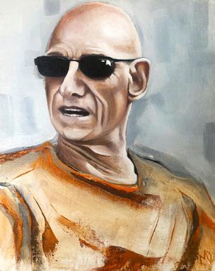 My latest self portrait (2022) begun as a demonstration and video. Some years ago I decided to paint selfies periodically as a means of dealing with my alopecia.