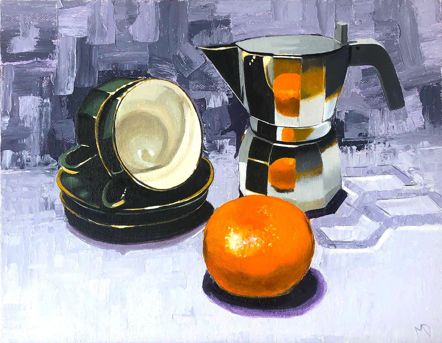 Apilco crockery is such a lovely thing to paint - it reflects well, it has such depth of colour and it contrasts with its gold edging. What's not to like as a still life artist. The vibrancy of the orange is used as a focal point. I find endless fascination in using household items that are not particularly obviously appealing and try to show how they can be so attractive in themselves if you study them closely enough.
