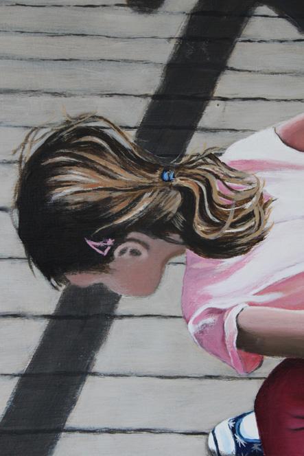 What's the inspiration / story associated with the artwork? I paint many figurative pieces and this one appealed to me as representing the very stuff of childhood innocence and it comes from a family snapshot of my granddaughter as she played on a pier.