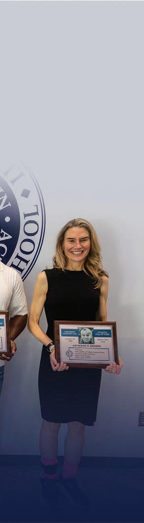 • Katherine Bossert Brooks ’89, a record-setting swimmer and the first female student body president at Country Day, spoke of how she used the skills she learned in the CCDS pool to overcome a life-altering stroke in her 30s. As Katherine put it, “ balancing academics and athletics taught me discipline and gave me energy” which was put to the ultimate test when she “ had to re-learn everything” after her stroke. But thanks to the resilience and character built in the pool, Katherine has “realized her childhood dream of becoming a mermaid,” since, as Katherine put it, she now swims better than she walks. Her inspiring story moved many to tears.